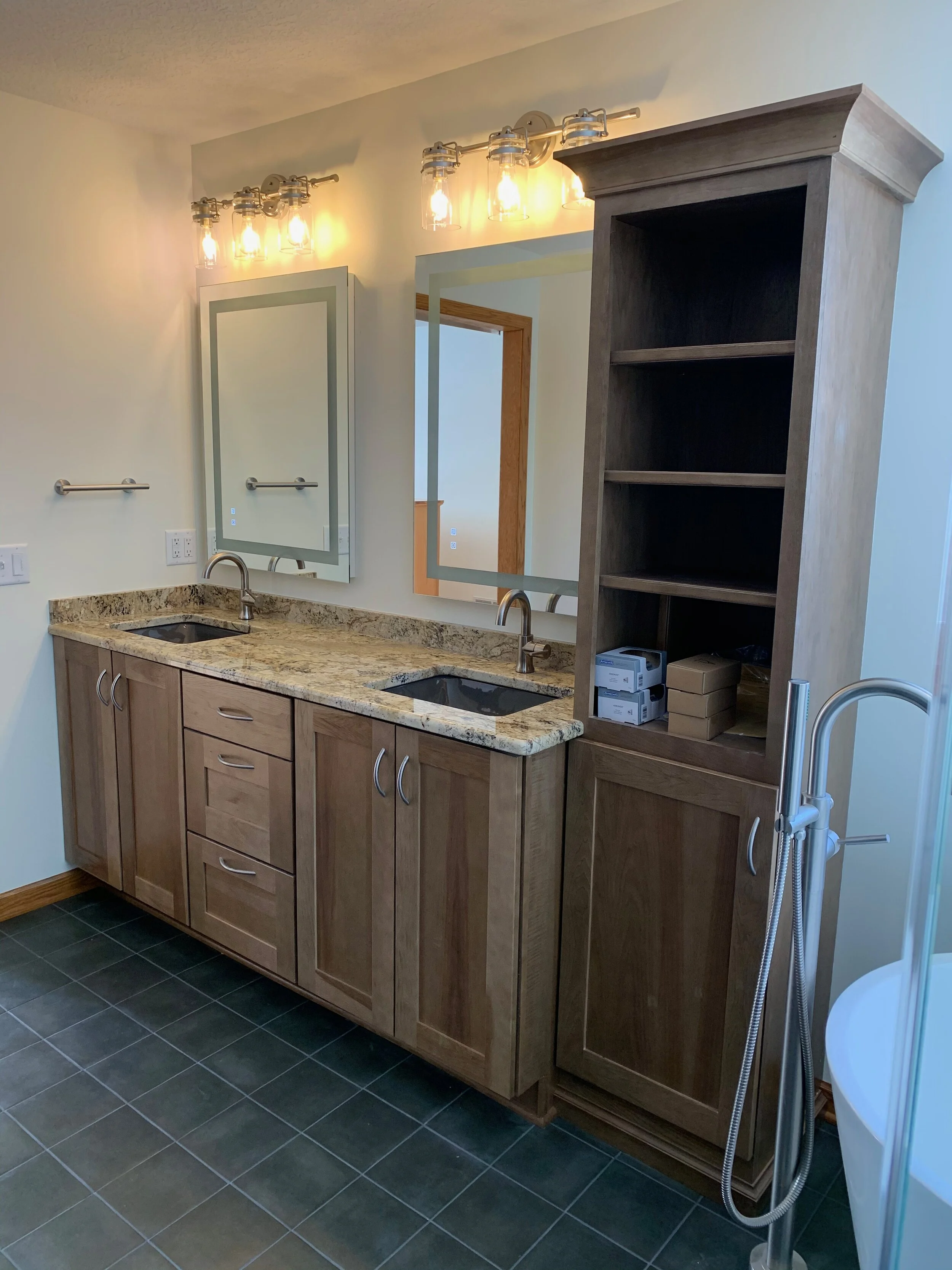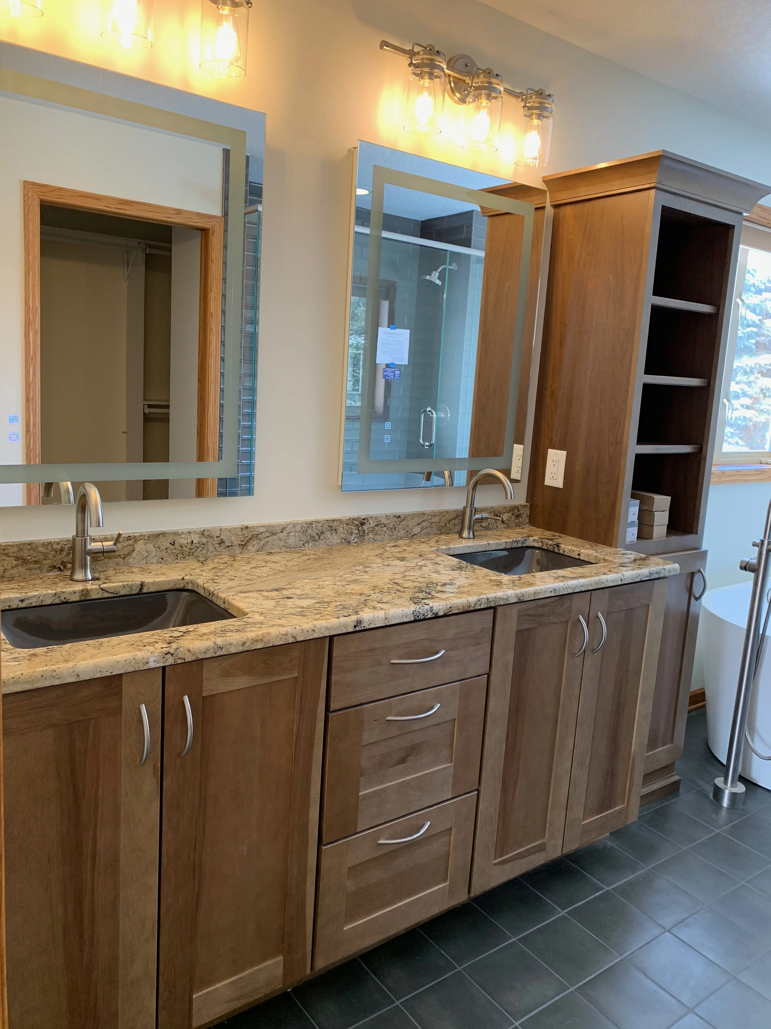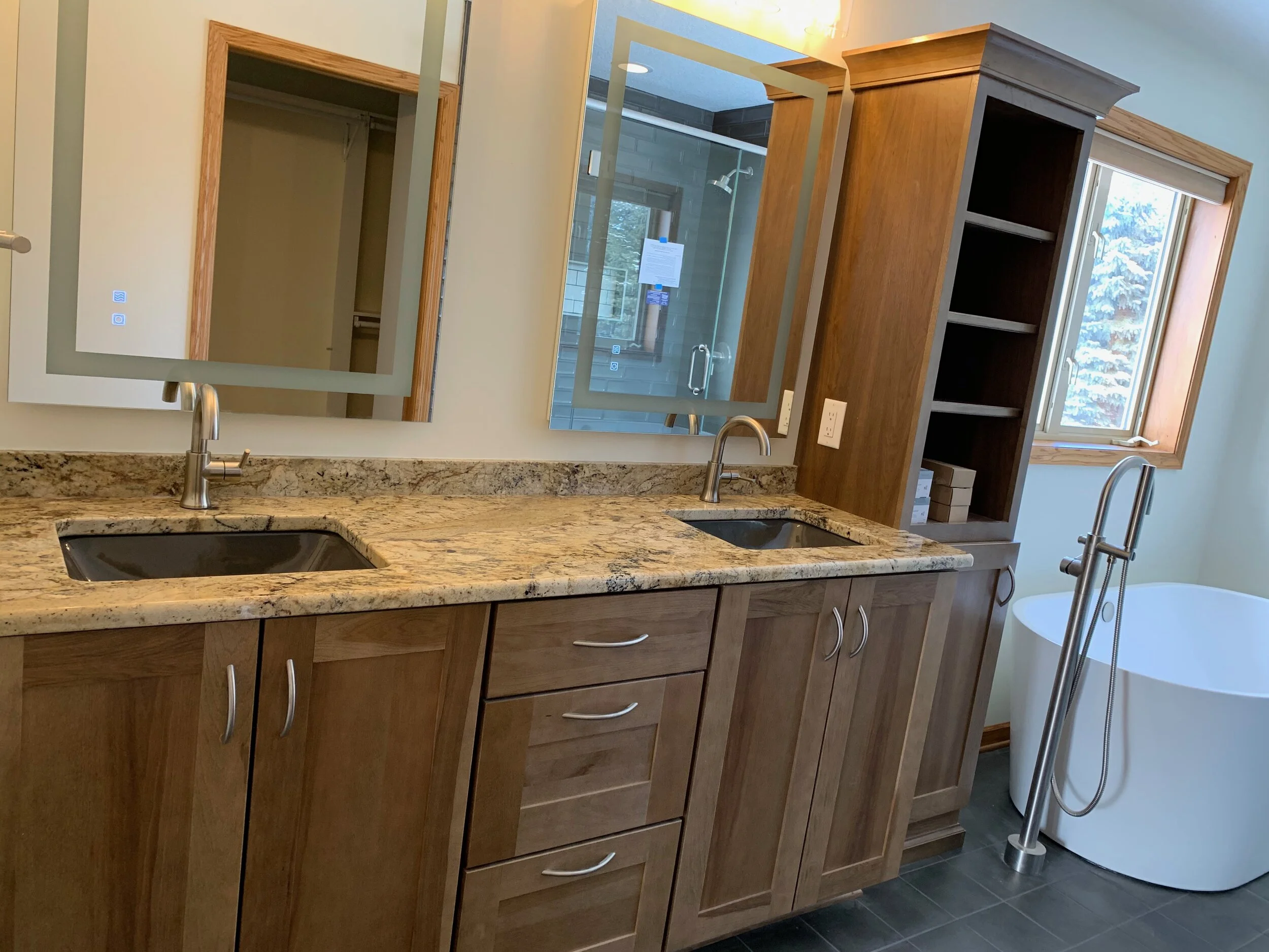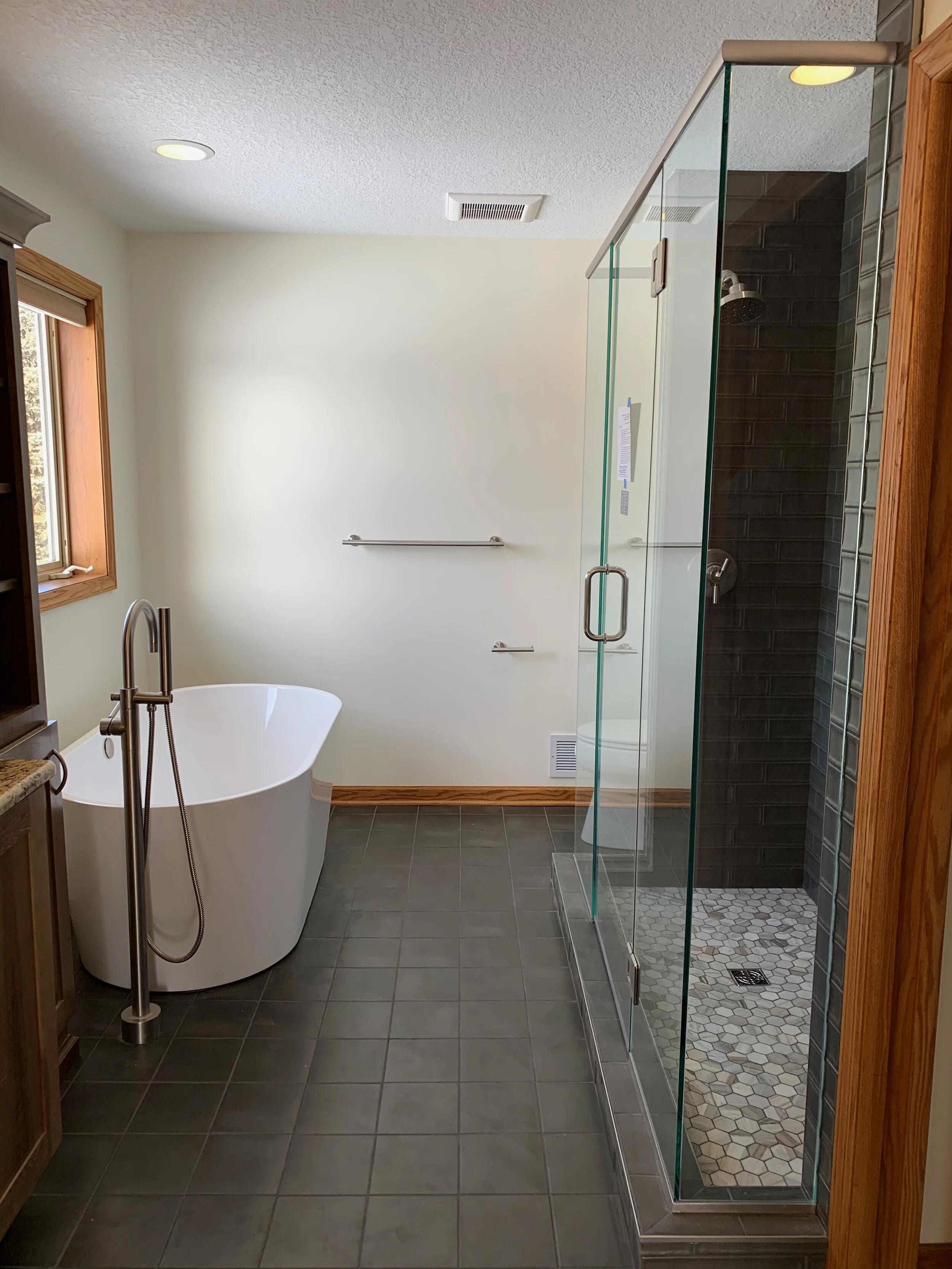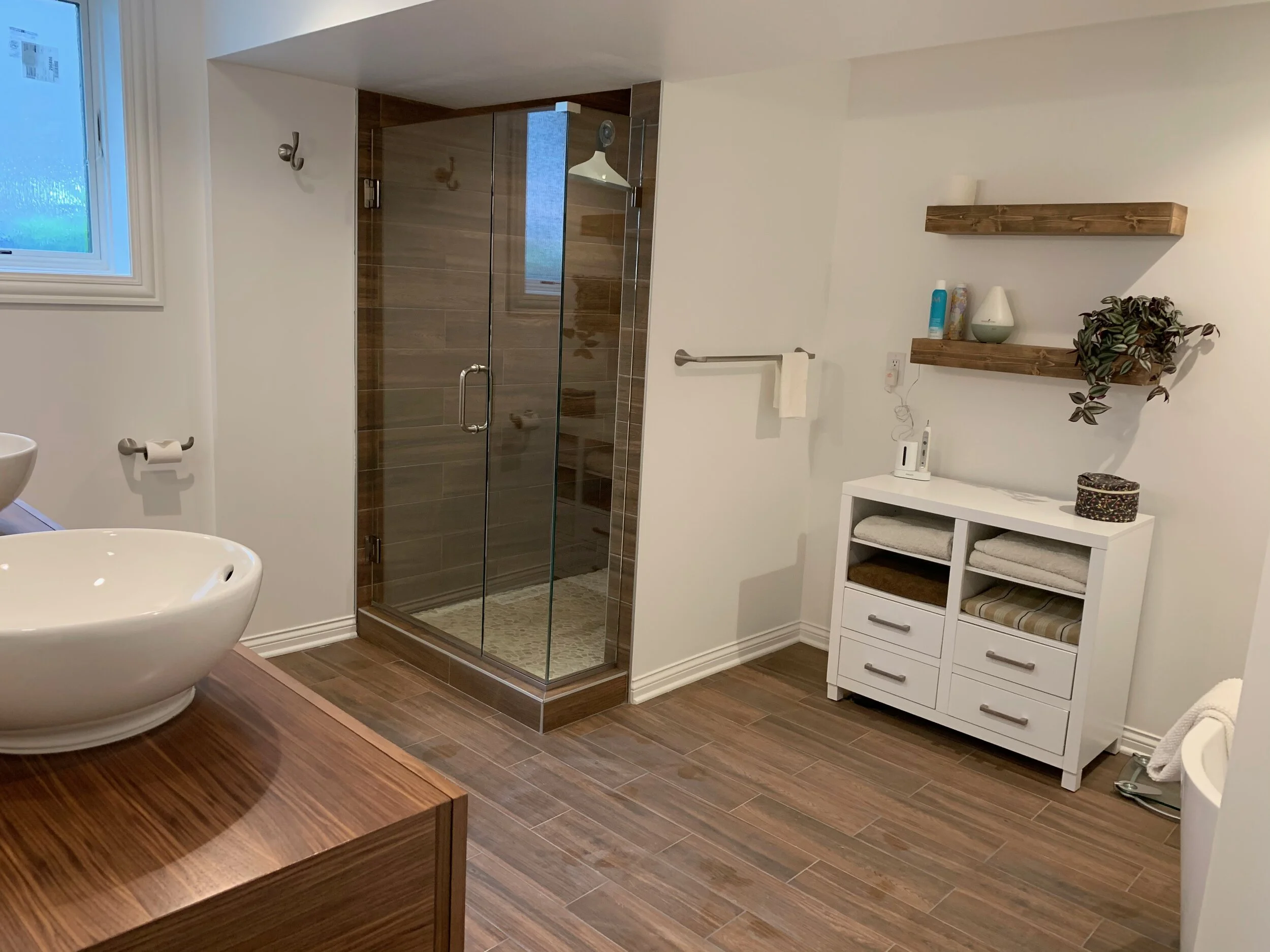 After kitchens, bathrooms are the most sought-after remodel homeowners invest in. Today’s bathrooms contain unexpected elements and comforts that can be incorporated into a simple update, or a larger project. Whether you're looking to add more space, or make more efficient use of your current space, the ultimate goal is to create a space that will function for your family. Upgrading bathroom fixtures and finishes is a quick way to add value and appeal to your home. Bathroom design styles are evolving and gone are the days of avoiding wood in bathrooms. Low maintenance porcelain tiles give you the look of wood without the worries and adding features such as reclaimed wood to your bathroom ceiling or shiplap to the walls creates that rustic warm feel that's timeless. Integrated lighting, over-sized vessel sinks, free standing bathtubs, and frameless glass showers add an elevated design style as well as a classy touch to the finished product. While heated floors and towel racks, steam and rain showers, and elegant tiles create a spa like feel, even on a budget.